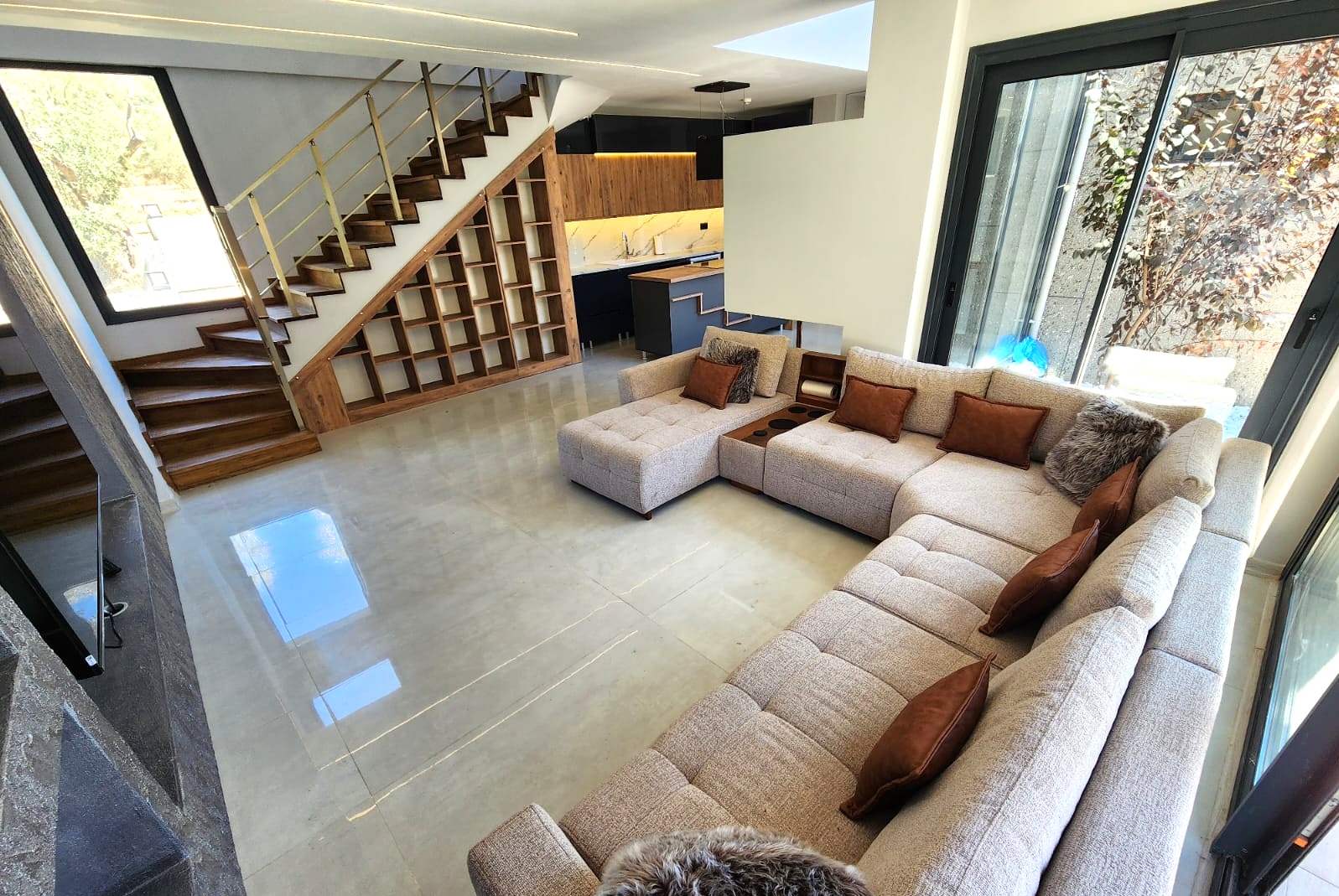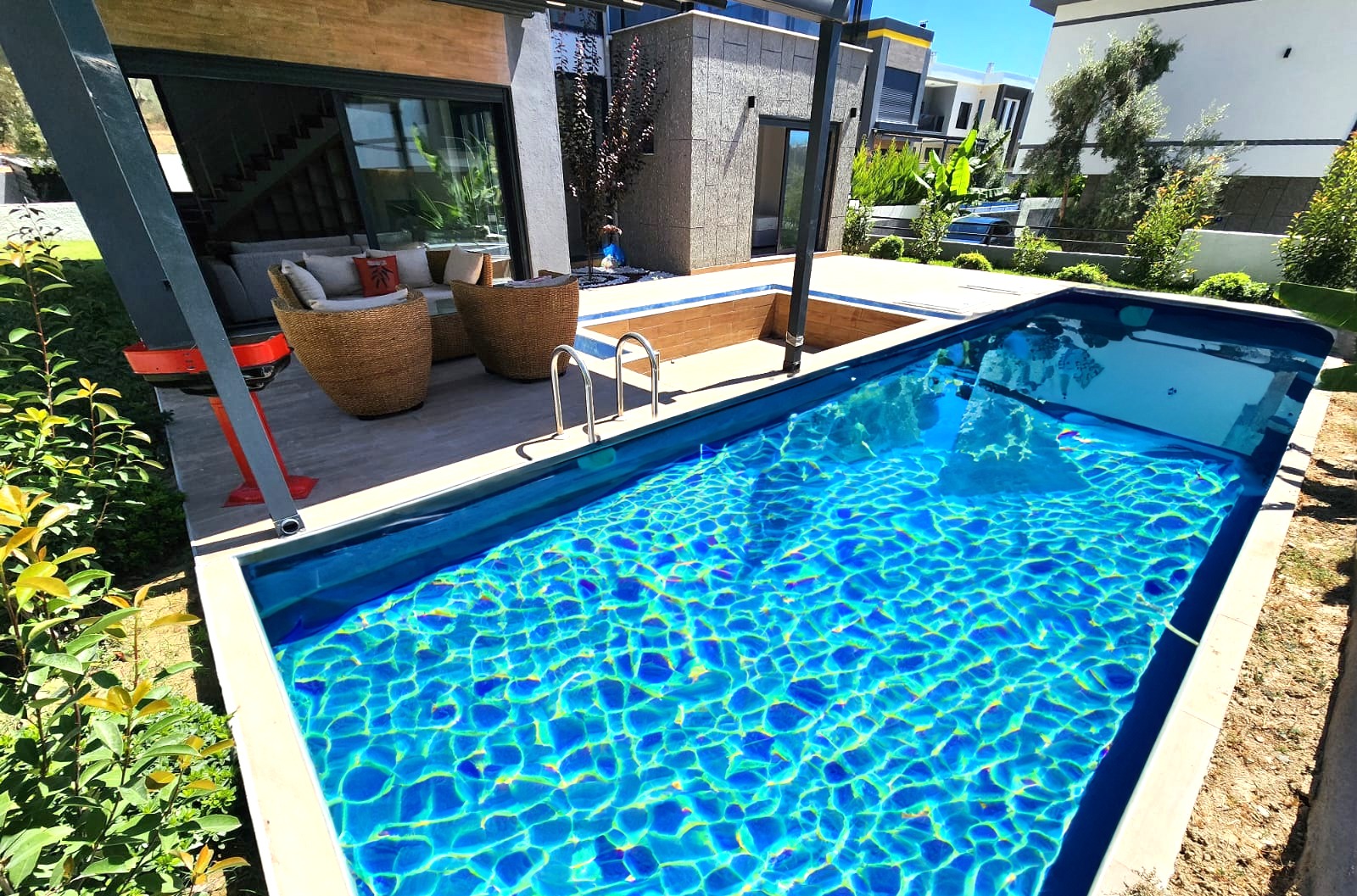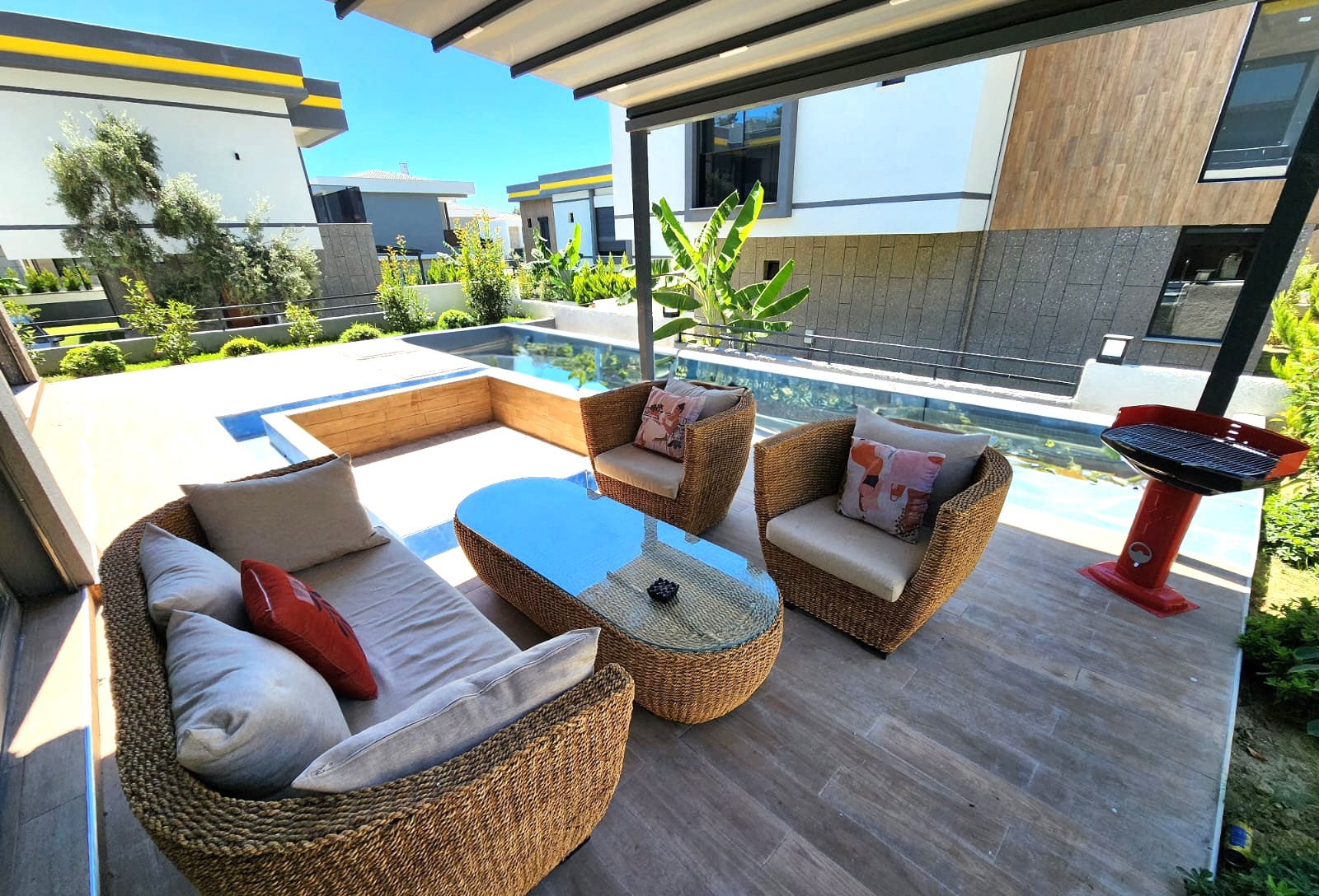 Der Strand liegt 1200 m entfernt, Einkaufsmöglichkeiten ca.500 m, Yachthafen Kuşadasi 2 km von der Wohnanlage entfernt ist. Der nächstgelegene Flughafen ist der Flughafen Izmir Adnan Menderes, 85 km entfernt.