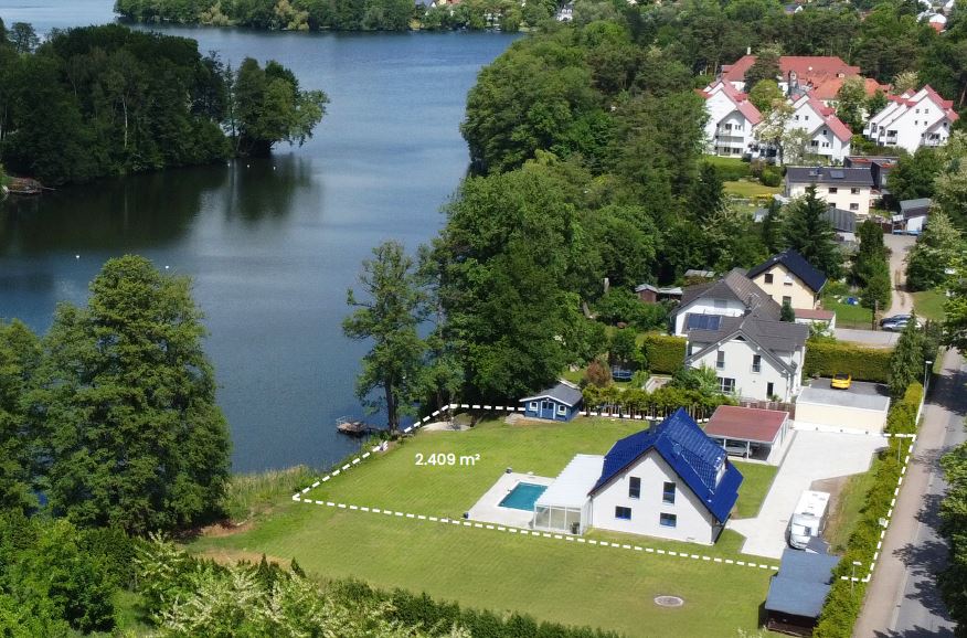 Wohnen am Motzener See / exkl. Villa mit Wassergrundstück, Pool und eigenem Steg