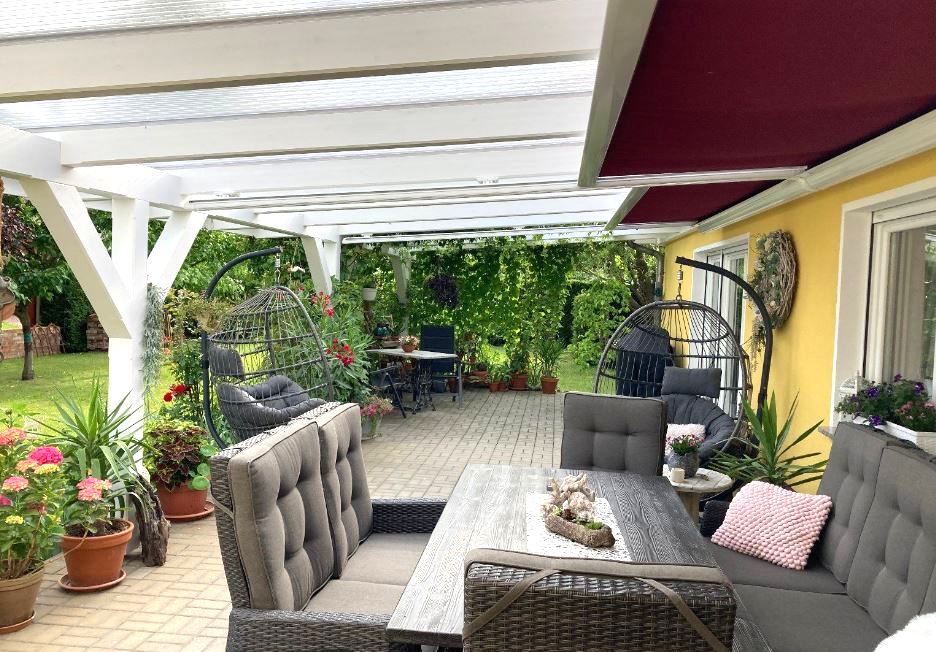 - 5 Zimmer - 2 Bäder - Wfl.ca.160 m² - Grst.ca.954 m² - Baujahr ca.2008 - Kamin - Klima - große Küche/EBK - ca.60 m² große Terrasse - Überdacht mit Sonnenschutz/Markise - große Garage für 2 Pkw`s/Stellplätze - Schuppen - excl. Gartenanlage mit Brunnen - Seenähe etc.